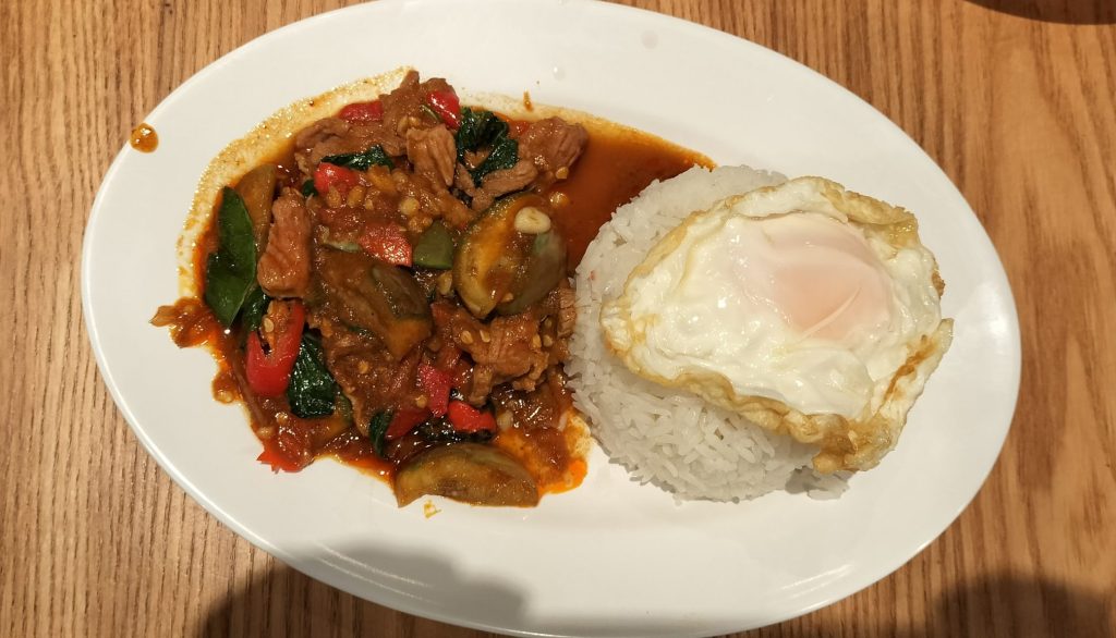 見た目も味も日本のガパオライスとあまり変わらず、食べやすくておいしかったです。ただ、現地で食べたことでタイの風味は増した気がします。