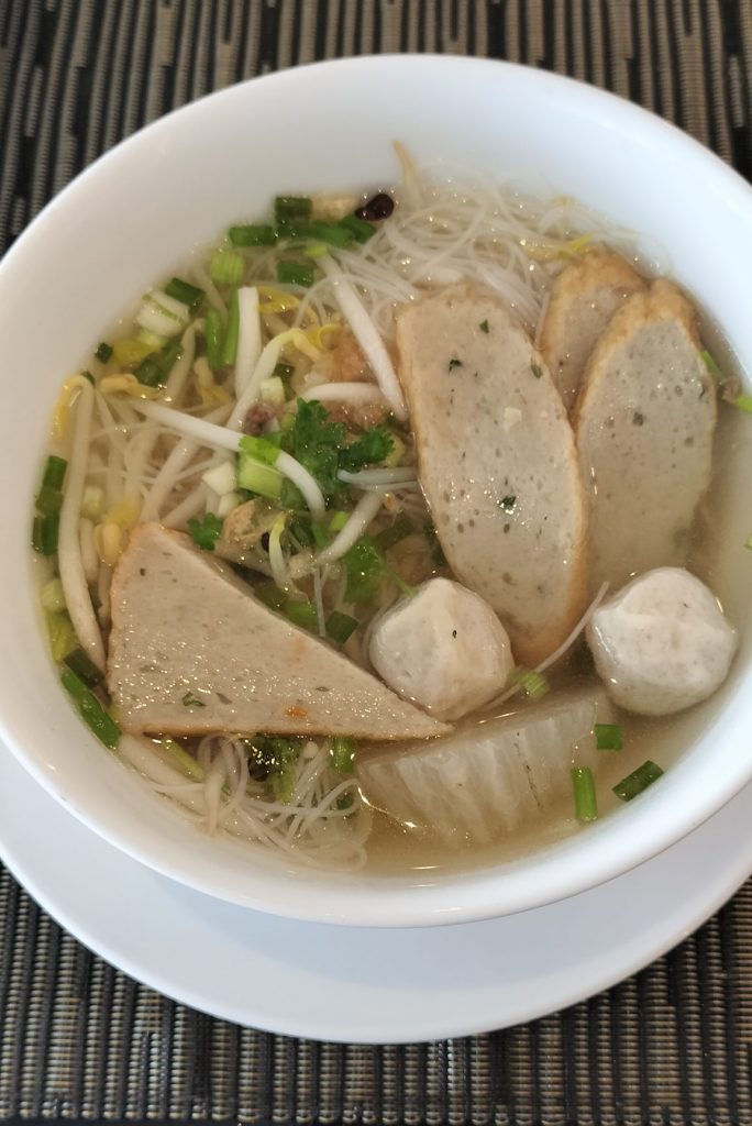 タイの練り物が使われ、スープに出汁感があります。大根も一緒に煮込まれていて、まるでおでんのようなホッとする味わい。日本の料理に似た親しみを感じる料理でした。