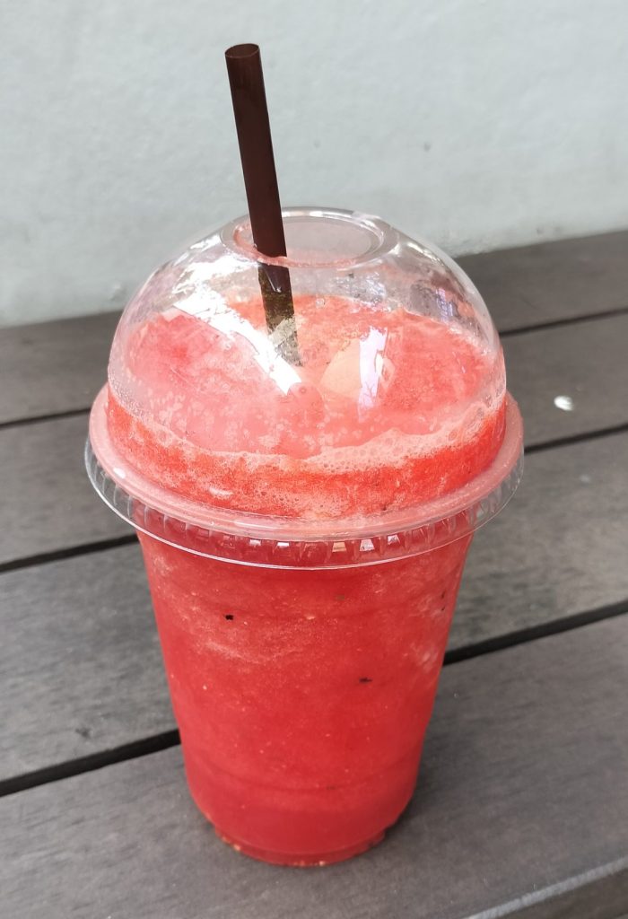買った直後にスイカをミキサーにかけてジュースにしてくれます。とても甘くて、しかもフレッシュ! 11月のタイの気候は30°前後あるので、ぴったりのジュースでした。